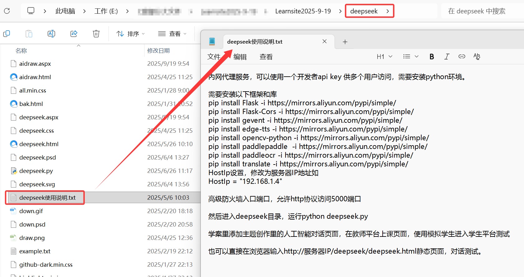 查看网站目录下的deepseek文件夹里的deepseek使用说明文件。