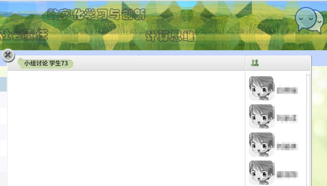 隐藏在登录后的首页右上方的图标按钮。默认情况下全班都在一个聊天室中。当学生进行了小组分组后,聊天成员就是小组成员了。另外可以启动网站目录下的LearnSiteServer文件夹中的LearnSiteServer.exe文件,可以监管学生聊天内容。