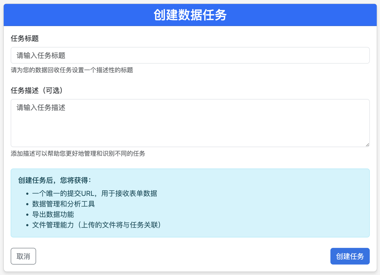 注册账号后,在”数据任务”页面中点击”创建新任务”,系统将自动生成一个专属的API接口地址。该地址如同您的”数字收件箱”,所有学生提交的数据都会汇集于此。